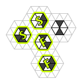In order to move, the hexagon that the first player currently occupies shows the movement options for the second player. Once the second player has moved one hexagon, that hexagon shows where the first player can move.