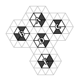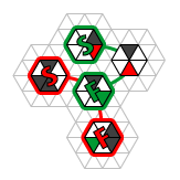 If the player on the left-most start hexagon were to move first, the possible moves (according to the shaded triangles of the right-most start hexagon) would be right-up to the right-most start hexagon or right-down to the top-most finish hexagon. However, if the player on the right-most start hexagon were to move first, the possible moves (according to the shaded triangles of the left-most start hexagon) would be left-down to the left-most start hexagon or down to the top-most finish hexagon or up (which is off the board).